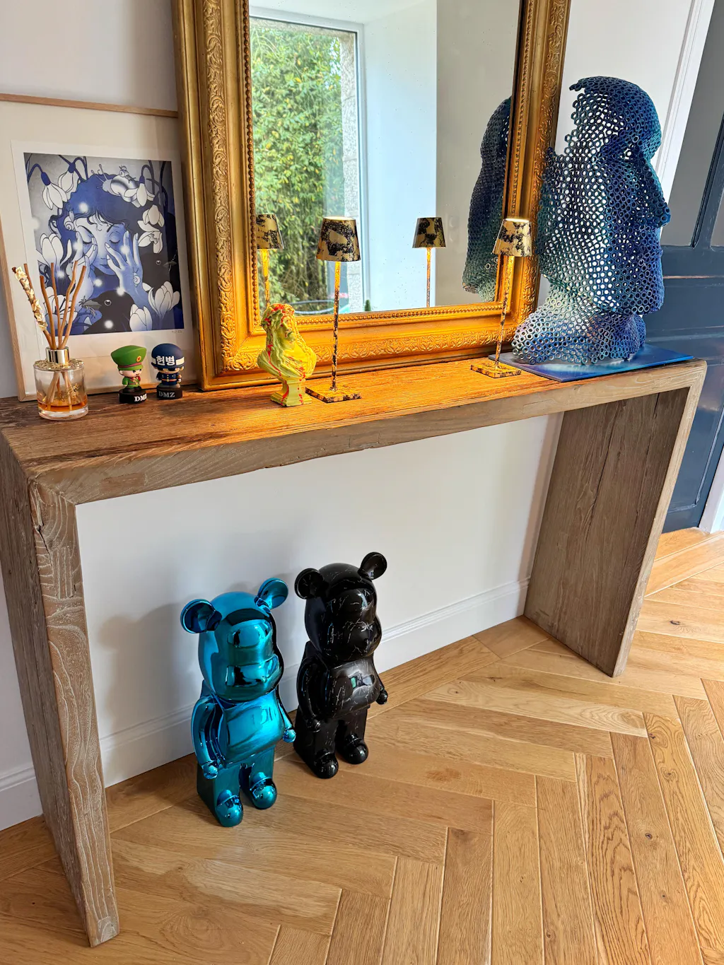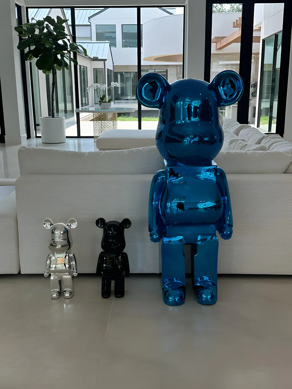 Our bear sculptures come in three distinct sizes; 50cm, 135cm, and 165cm. Whether enhancing a cozy shelf, becoming a focal point in your living room, or standing tall as an enterance statement piece, there’s a size for every space.